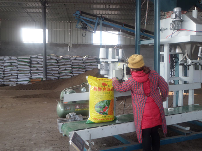 圖片說(shuō)明:用于生物有機(jī)肥包裝機(jī)包裝現(xiàn)場(chǎng)